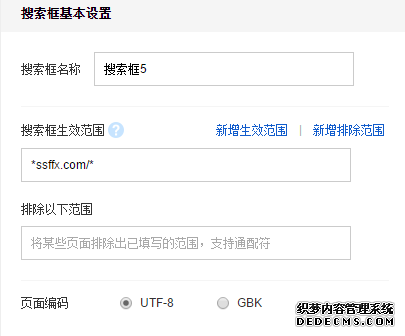3、通常搜索范圍你全站,也就是域名前后有一個(gè)*號(hào),如果是單獨(dú)的一個(gè)欄目,可以選擇欄目URL前后加*。如果需要排除某個(gè)欄目的搜索,那可以直接在排除范圍內(nèi)增加欄目鏈接即可。