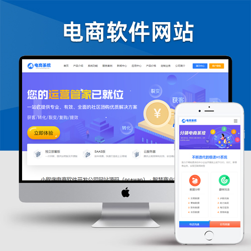 藍(lán)色小程序網(wǎng)站pbootcms模板-小程序電商軟件開發(fā)公司網(wǎng)站源碼(pc+wap)