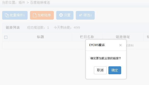 六、點擊加載鏈接會彈出提示,這里我們點擊確定