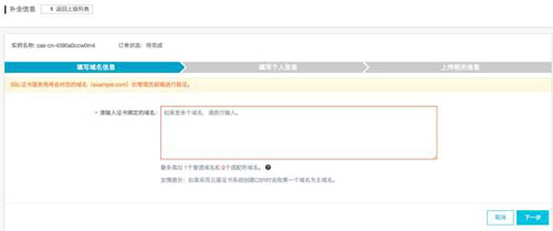 (5)此時(shí)的狀態(tài)處于“待完成”,點(diǎn)擊右側(cè)“補(bǔ)全”按鈕,補(bǔ)全域名信息: