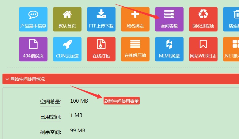 上傳程序后,想要查看空間已使用了多少容量,點(diǎn)擊“空間容量查看”功能進(jìn)行刷新即可。